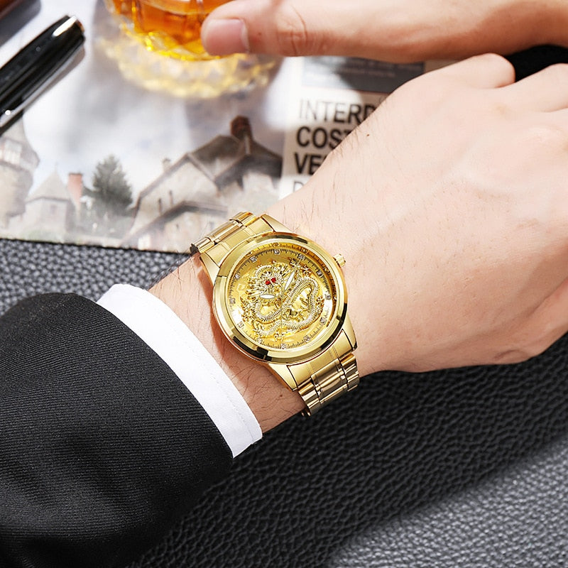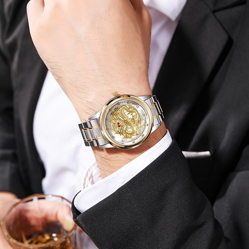 Draag zelfvertrouwen en kracht, wat de gelegenheid ook is, met de DragonWatch™. Het is een prachtig gemaakt uurwerk met een drakensymbool in reliëf dat kracht, eer, waardigheid en geluk symboliseert, waardoor je zelfvertrouwen krijgt.