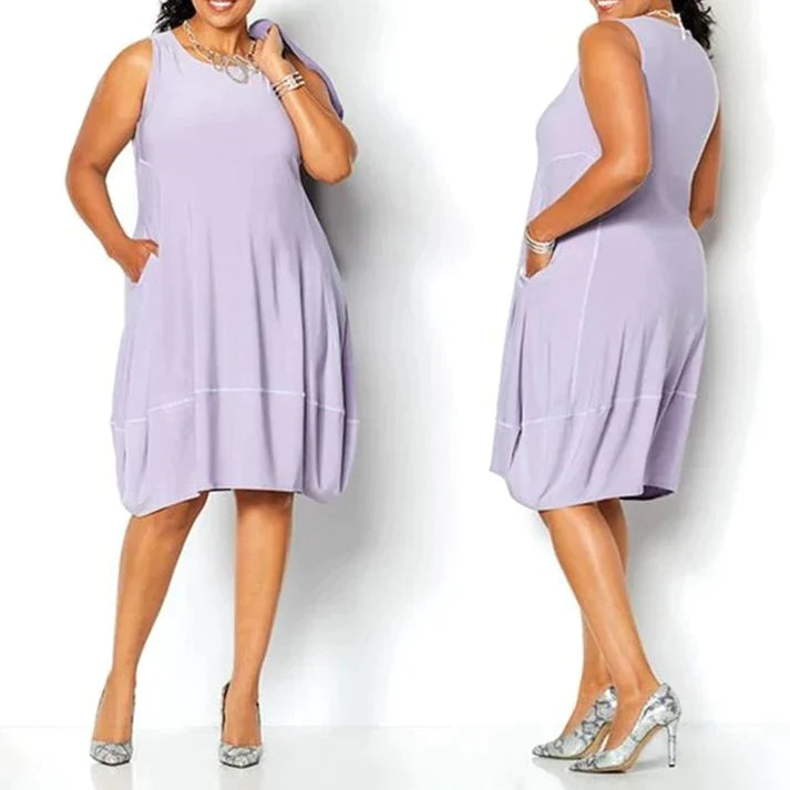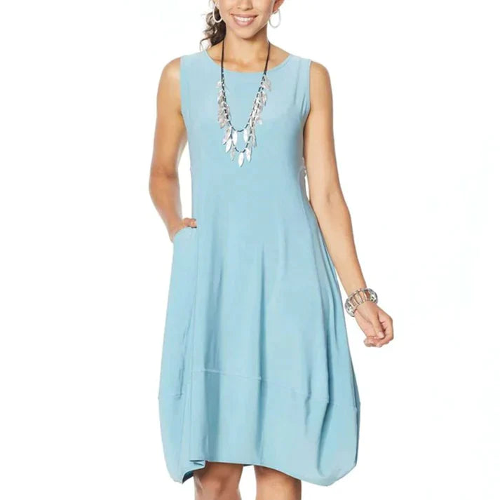 Deze mouwloze jurk van zachte jersey geeft je een comfortabel gevoel en trekt overal de aandacht. En weet je wat? Hij is uitgerust met praktische zakken voor dat extra vleugje functionaliteit dat je altijd al wilde.